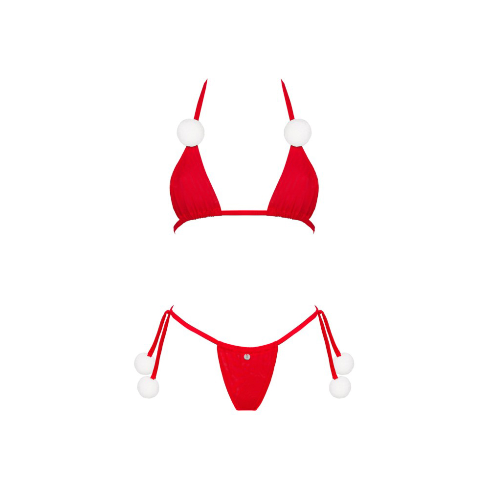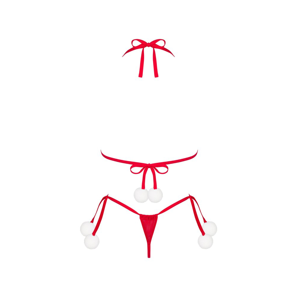 Πρόκειται για ένα γυναικείο σετ εσωρούχων σε έντονο κόκκινο χρώμα, σχεδιασμένο με πιο παιχνιδιάρικο και εορταστικό ύφος.