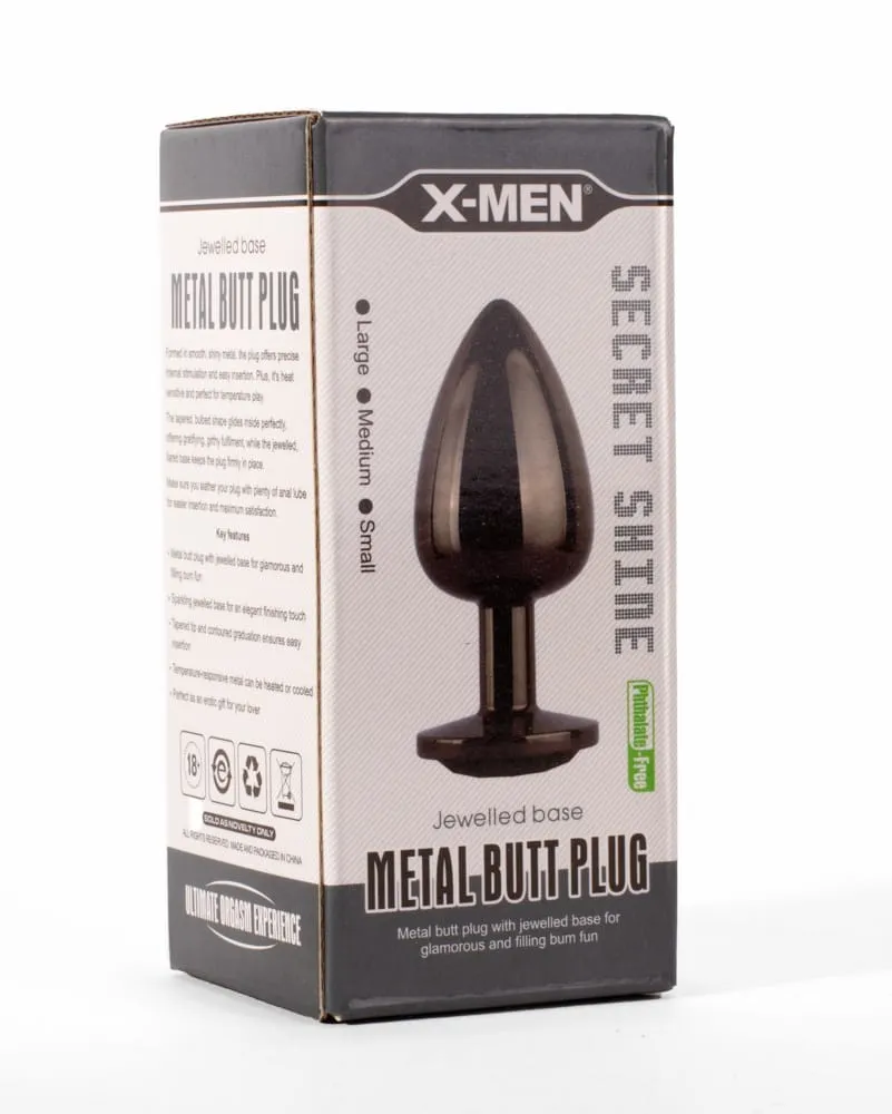 Το X-MEN Secret Shine Metal Butt Plug Gun είναι ένα κομψό και πολυτελές sex toy, σχεδιασμένο για όσους αγαπούν το πρωκτικό παιχνίδι με στυλ. Η μεταλλική του κατασκευή προσφέρει στιβαρή αίσθηση, ενώ η λεία επιφάνεια γλιστρά εύκολα για άνετη χρήση. Στη βάση του διαθέτει εντυπωσιακό κρύσταλλο που χαρίζει μια διακριτική αλλά αισθησιακή λάμψη.
